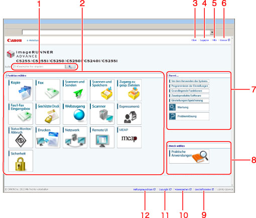 Die oberste Seite der e-Anleitung wird angezeigt. |