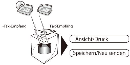 Vorübergehende Speicherung empfangener Fax-/I-Faxdokumente in der Box für Speicherempfang und der Vertraulichen Faxeingangsbox