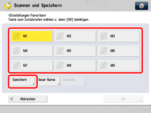 Wählen Sie die Taste zum Speichern aus → Berühren Sie die Taste [Speichern].