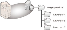 Beim Einrichten des Ausgangsordners im Windows (SMB) Freigabeordners brauchen Sie nicht Anwenderordner vorzubereiten. Wenn ein mit einem Login-Anwendernamen bezeichneter Ordner nicht unter dem Ausgangsordner vorbereitet ist, wird der Ordner automatisch angelegt.