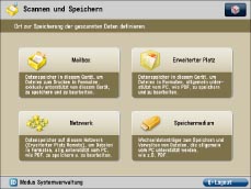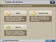 Sie können die Displayeinstellungen des Speicherorts festlegen, die nach Berühren der Taste [Scannen und Speichern] oder [Zugang zu gesp.Dateien] angezeigt werden.