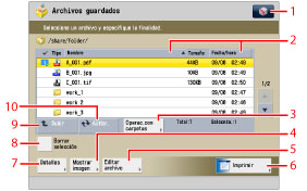 [Fecha/hora] Se pulsa para ordenar los archivos por fecha/hora en orden ascendente o descendente. |