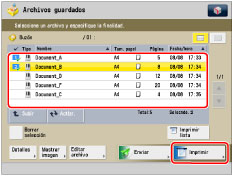 Sólo es posible seleccionar varios archivos cuando los archivos están guardados en el mismo buzón. Para imprimir archivos guardados en distintos buzones, mueva de antemano los archivos a un buzón. (Consulte "Mover/duplicar un archivo".)