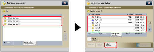 Seleccione la ubicación de almacenamiento que desee → seleccione el directorio en el que desee guardar el archivo → pulse [Editar archivo].