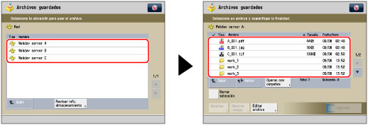 Puede agregar o eliminar archivos en el espacio avanzado de otro equipo de la red.
