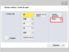 Si aparece una pantalla en la que se le pide que ajuste las guías deslizantes, ajuste el ancho de las guías deslizantes → especifique el tamaño del papel → pulse [Aceptar].