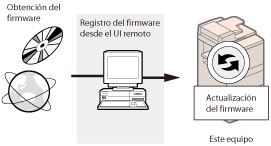 Puede actualizar el firmware del equipo a la versión más reciente con la función "Registrar/Actualizar software" de la IU remota.