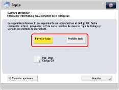 Se restringe la copia de las hojas impresas. No es posible copiar las hojas impresas cuando se detecta Prohibir todo.