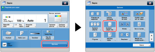 Si activa [Opc. de números], [Toda la superficie] y [Números en 5 posiciones] estarán atenuados y no pueden seleccionarse. (Consulte "Opciones de numerar juegos de copias".)