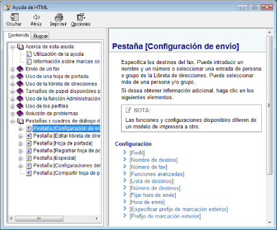 Puede mostrar la ayuda en línea haciendo clic en [Ayuda] en la pantalla del controlador de fax.