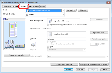 La pantalla puede variar según el sistema operativo y también en función del tipo y la versión del controlador de impresora.