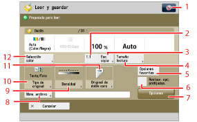Se pulsa para seleccionar el tipo de original que se va a leer ([Texto/Foto], [Mapa], [Imagen impresa], [Foto], o [Texto]). |