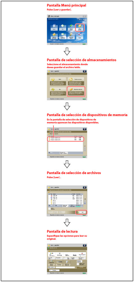 Se pulsa para actualizar el contenido del dispositivo de memoria.