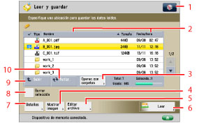 Para conocer las instrucciones acerca de cómo ordenar las carpetas, consultar la información detallada del archivo y editar o eliminar archivos, consulte "Archivos guardados".