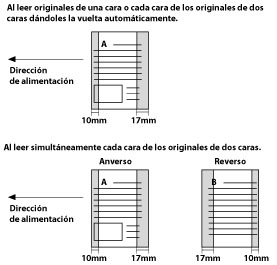 Si las partes en color están situadas únicamente en el intervalo indicado en el esquema de abajo, cuando se cargan los originales en el alimentador