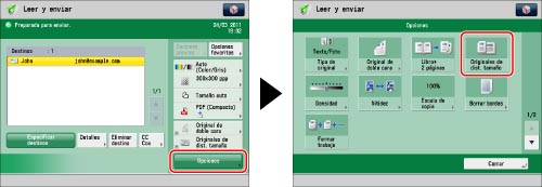 Si en Tamaño de lectura elige una opción distinta de [Auto], todos los originales se leen con el tamaño especificado. Si desea leer cada original con su tamaño original, elija [Auto] en Tamaño de lectura.