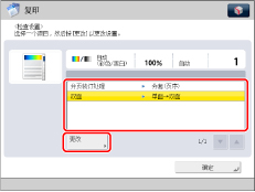 选择复印模式时,[更改]按钮上显示指向右边的三角形(