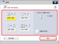 可以使用“设置确认”屏幕确认、更改或取消选定的复印模式。