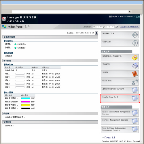 如果以“系统管理员”(Administrator)身份登录,确保在关闭SSO-H之前先进行注销。如果未注销就关闭网络浏览器,即使再次以“系统管理员”(Administrator)身份登录,在一段时间内也无法使用SSO-H。