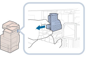 在“硬盘镜像组件”或“硬盘加密和镜像组件”与“可移动硬盘存储器”一起使用并且其中一个硬盘发生故障时,要向另一个硬盘上复制数据,触摸面板显示屏幕上会出现<硬盘需要更换。(联系客户支持中心)>信息。即使在本机执行操作时也可以安装新硬盘以更换发生故障的硬盘。
