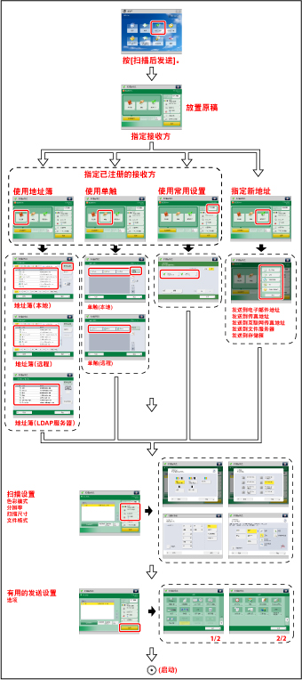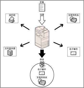为了将扫描文档发送至电子邮件地址、互联网传真地址或文件服务器,必须指定网络设置。(请参阅“电子邮件/互联网传真常规通信设置”)