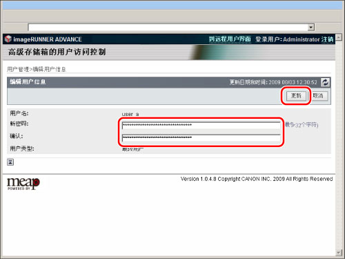 在[新密码]和[确认]中输入新密码→单击[更新]。