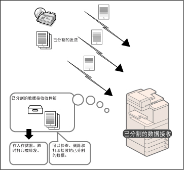 以已分割的数据形式接收的互联网传真文件存入“已分割的数据接收收件箱”中,并合并成一个文件。