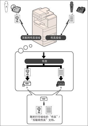 如果通过“传真”/“互联网传真”接收的文件符合指定的转发条件,则将其存入“保密传真收件箱”中。可以随时使用所需设置打印存储的文件。