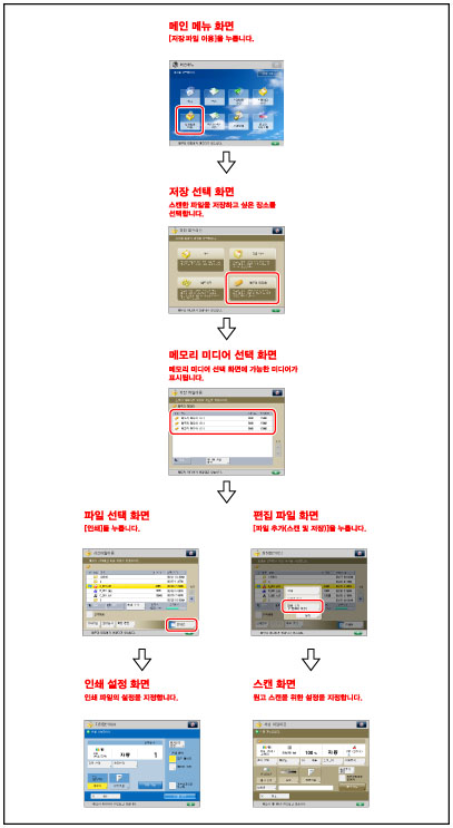 [파일 추가 (스캔하여 저장)]와 관련된 절차 및 스캔 화면 조작에 대한 사항은 "파일 추가(스캔하여 저장)" 및 "스캔 및 저장 조작 순서"를 참고하십시오.