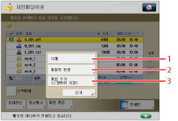 메모리 미디어에 저장된 파일을 삭제합니다. 32개의 파일을 동시에 선택 및 삭제할 수 있습니다.
