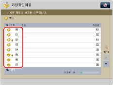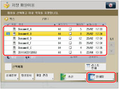 박스에 두 개 이상의 문서가 저장된 경우 [명칭]이나 [날짜/시각]을 눌러 파일 리스트를 정렬할 수 있습니다.