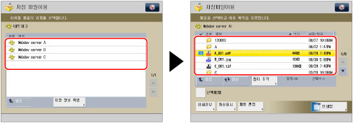 폴더에 두 개 이상의 문서가 저장된 경우 [명칭]이나 [날짜/시각]을 눌러 파일 리스트를 정렬할 수 있습니다.