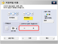 <뒷면>에 <앞면>과 같은 설정을 지정하려면 [앞면과 같음]을 누릅니다.