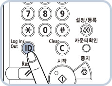 기기 사용을 완료한 후 로그아웃하는 것을 잊었더라도 [자동클리어 시간]이 설정된 경우 지정된 시간이 경과되면 부문 ID 및 비밀번호를 입력하는 화면이 자동으로 나타납니다. ("자동 클리어 시간" 참고)