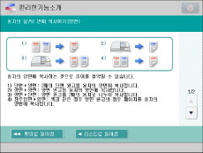 메인 메뉴 화면에서 [편리한 기능소개]를 누르면 이 기기에 대한 기능 소개 화면이 표시됩니다.