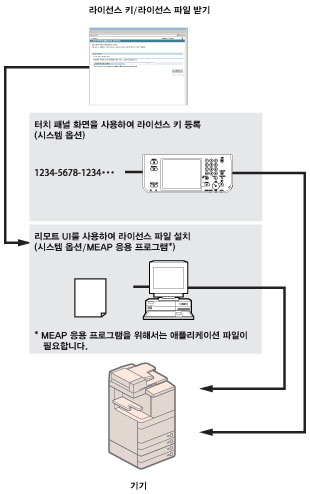 시스템 옵션/MEAP 응용 프로그램에 따라 라이선스 등록이 필요할 수 있습니다.