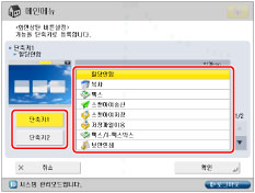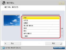 기능 버튼 수가 <메인 메뉴 버튼표시 설정>에 대해 지정된 레이아웃의 버튼 수를 초과할 경우 버튼 수를 초과하는 나머지 버튼이 메인 메뉴 화면의 2페이지 뒤에 표시됩니다. 최대 16개 버튼을 메인 메뉴 화면에 표시할 수 있습니다.