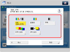 원하는 컬러 모드를 기본 설정으로 사용하려면 [기본설정 변경]에서 원하는 컬러를 등록할 수 있습니다.("복사 기능에 대한 기본 설정 변경/초기화" 참고)