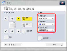 [페이지번호 인쇄/스탬프의 문자열 등록]에 등록된 문자를 선택할 수도 있습니다.("페이지 번호 및 스탬프에 대한 사용자 지정 문자 등록/편집/삭제" 참고)