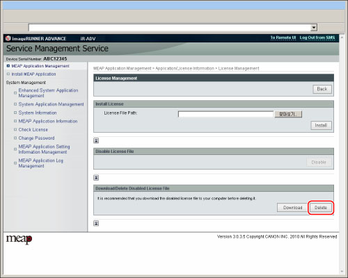 비활성화된 라이선스 파일만 다운로드하거나 삭제할 수 있습니다.