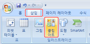[삽입] 메뉴에서 [클립 아트]를 클릭합니다.