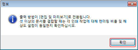 [출력 방법] → [편집 및 미리보기]를 선택합니다.
