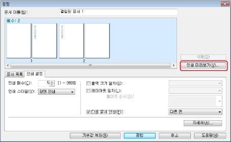 인쇄 미리 보기를 확인하려면 [인쇄 미리보기]를 클릭합니다.