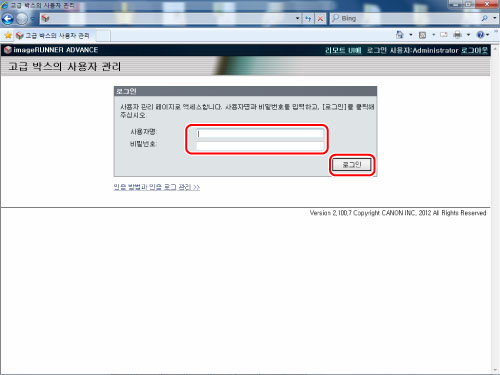 사용자 이름 및 비밀번호를 입력하고 → [로그인]을 클릭합니다.
