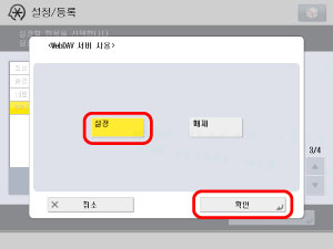 (설정/등록) → [환경 설정] → [네트워크] → [TCP/IP 설정] → [WebDAV 서버 사용]을 누릅니다.