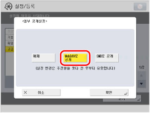 (설정/등록) → [기능 설정] → [파일 저장/이용] → [고급 박스 설정] → [외부 공개설정]을 누릅니다.