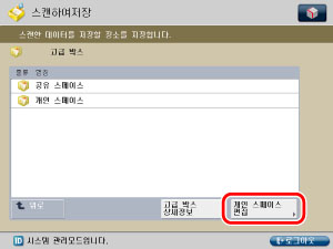 (설정/등록) → [기능 설정] → [파일 저장/이용] → [고급 박스 설정] → [개인 스페이스 작성 허가]를 누릅니다.