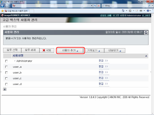 포털 화면의 응용 프로그램에서 [고급 박스의 사용자 관리]를 클릭합니다.