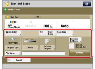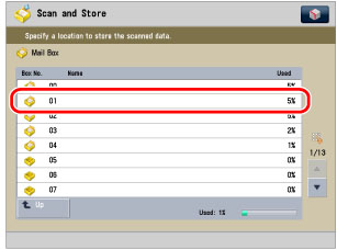 리모트 UI에 액세스하고 → click [수신/저장 파일 이용] → [박스]를 클릭합니다.