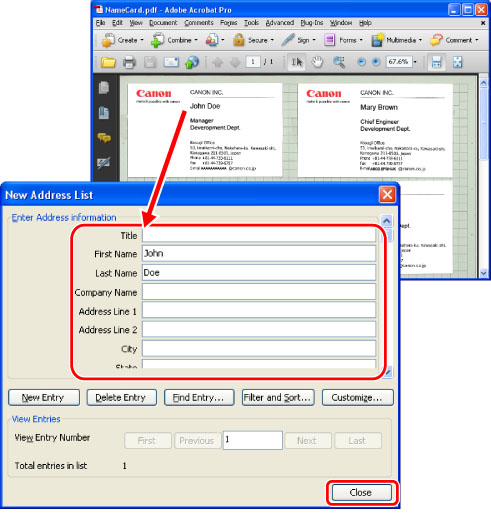모든 명함의 입력을 마쳤으면 [닫기]를 클릭합니다.